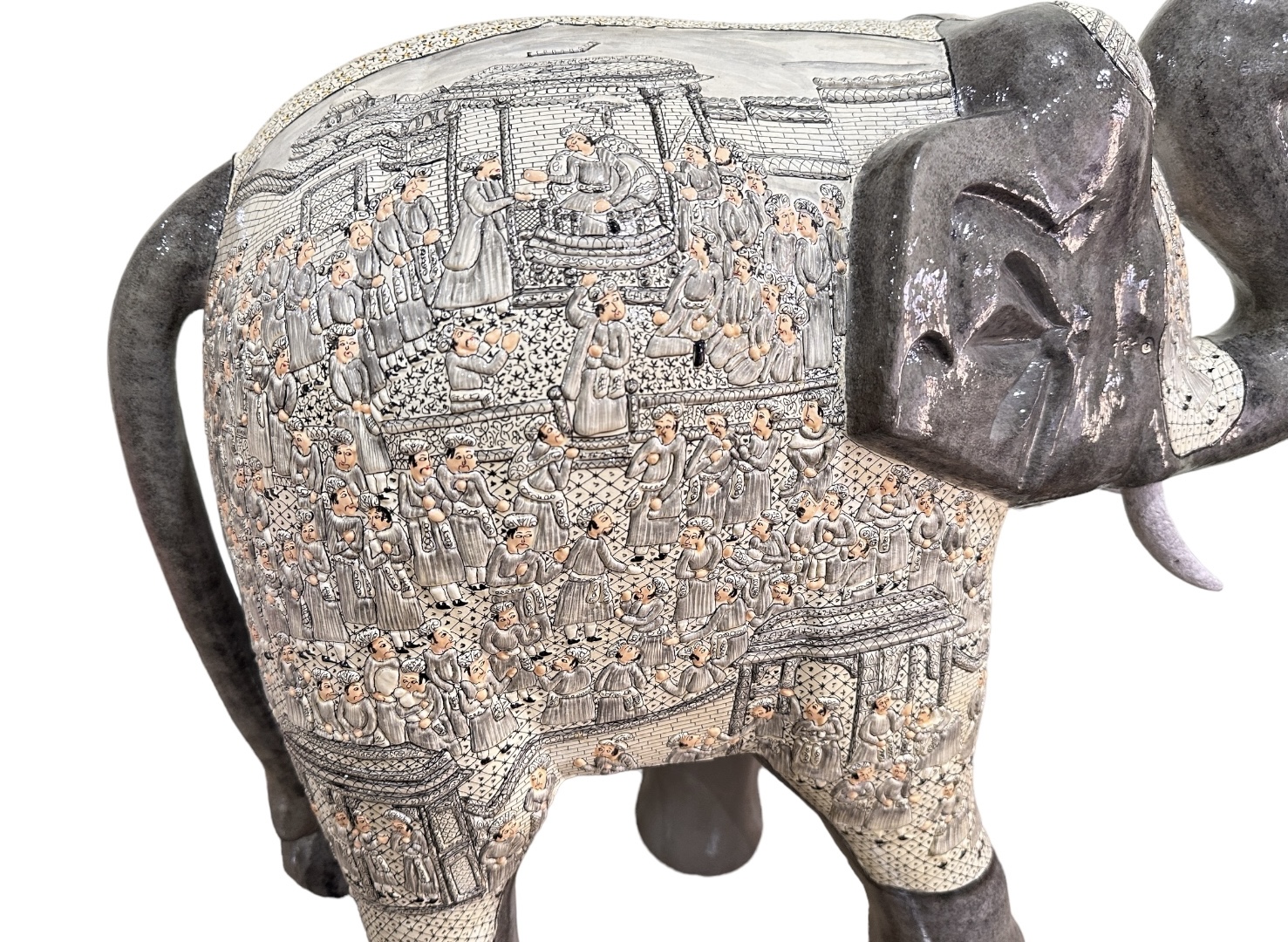 Handmade Elephant Statue, Hand painted elephant sculpture, Indian rlephant statue.Paper Mache elephant handpainted in mughal darbar design