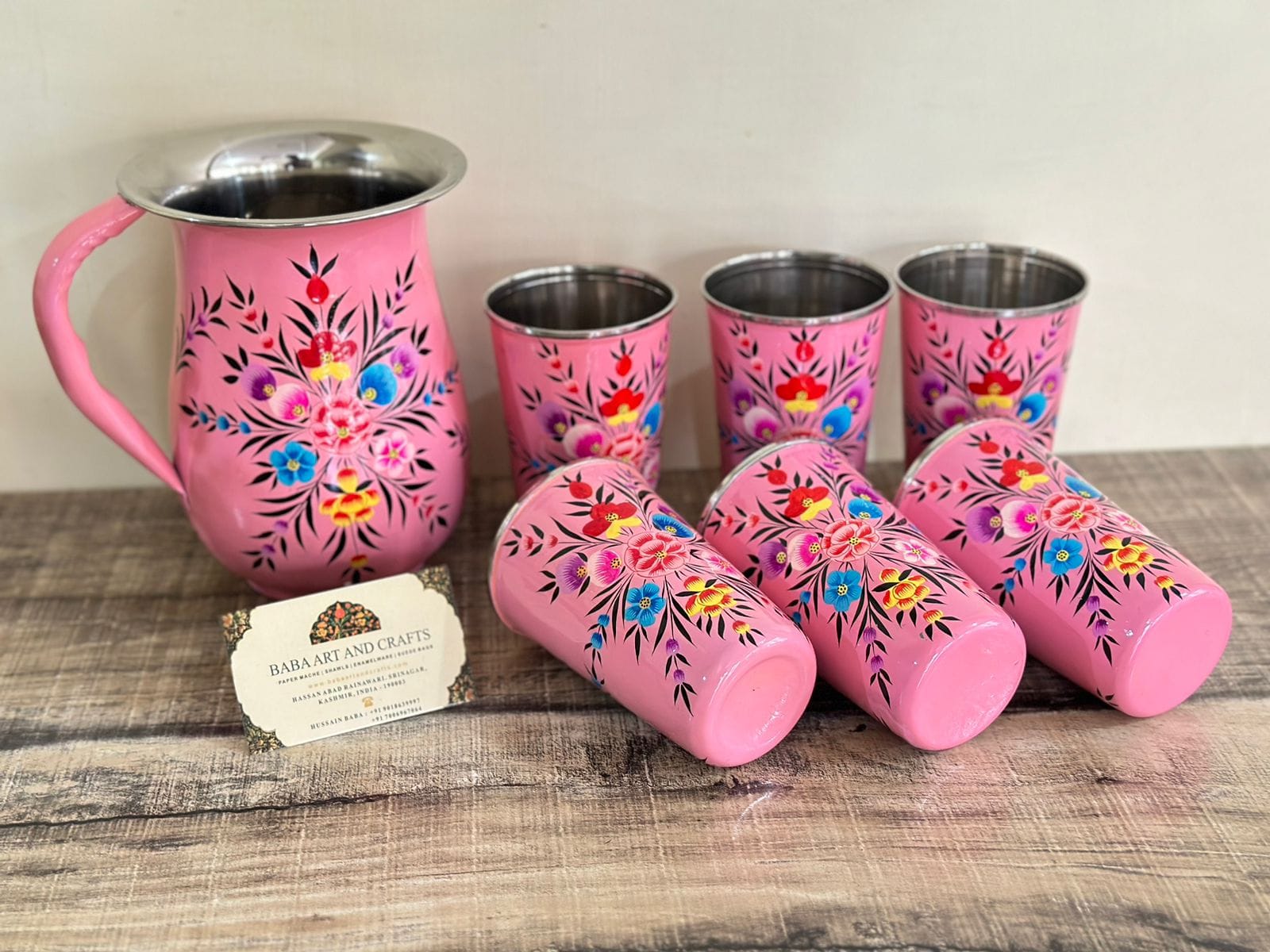 Stainless steel utensils with beautiful enamel colors n Kashmiri designs.
